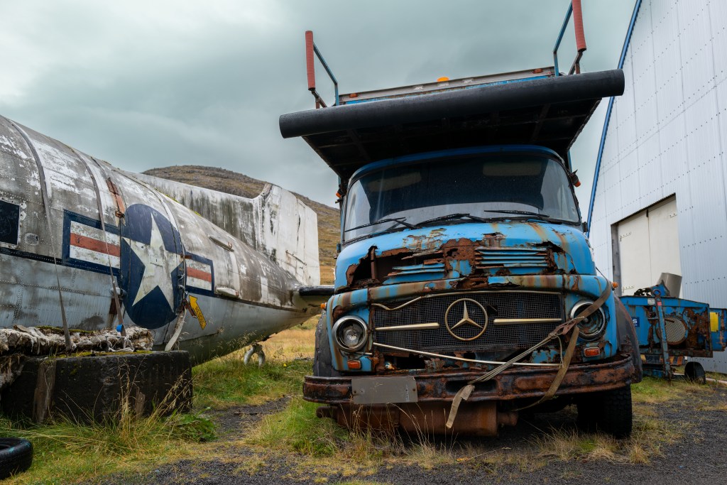 The plane is a US Navy Douglas C-117D, a version of the Douglas DC-47 Skytrain or “Dakota” plane which was used extensively by the Allies in the World War 2. After the war, these planes were modified to be used commercially, and could shuttle up to 38 people. During the Vietnam War, some C-117D aircraft were converted to carry out reconnaissance duties. This plane is was decommissioned in 2004 at the airfield in Keflavik, and then donated to the Folk Museum the same year when the Keflavik airfield was closed.